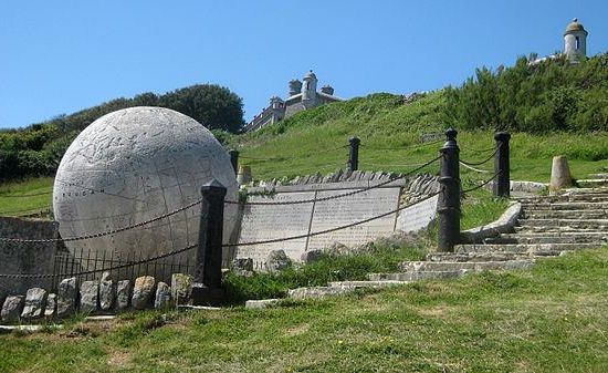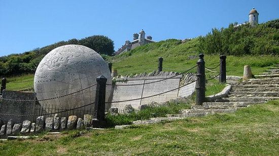 The Great Globe at Swanage is one of the largest stone spheres in the world and stands at Durlston Castle within Durlston Country Park, a 113-hectare country park and nature reserve. It is constructed of Portland stone, weighs about 40 tonnes and is 3 metres in diameter.