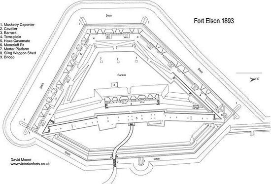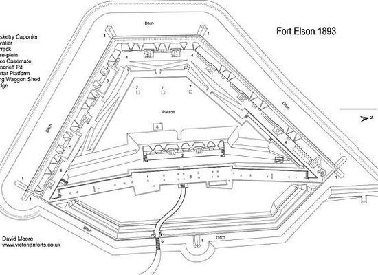 Fort Elson was one of the early Palmerston Forts, in Gosport, England, the northernmost polygonal land fort in the defence line to the west of Gosport. It was located on land immediately to the south of Elson Creek, to which it was connected by a sluice. Fort Elson was the most northerly fort in the line of five which formed part of the ‘Sea Front and Spithead Defences’, Inner Line, Land Front, Left Flank. This line of forts was later known as the Gomer-Elson Line or 'Gosport Advanced Line' This consisted of, from south to north, Fort Gomer, Fort Grange, Fort Rowner, Fort Brockhurst and Fort Elson. Work began on Fort Elson in 1855. The estimated cost of Fort Elson was £63,740 with the actual cost £61,180.