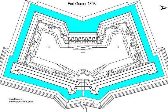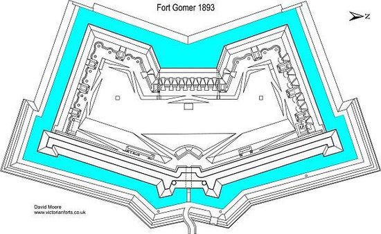 Fort Gomer was one of the Palmerston Forts, in Gosport, England, the southernmost and first-built Polygonal fort in the defence line to the west of Gosport. It was located on land immediately to the west of the present Gomer Lane. Fort Gomer was the most southerly fort in the line of five which formed part of the ‘Sea Front and Spithead Defences’, Inner Line, Land Front, Left Flank. This line of forts was later known as the Gomer-Elson Line or 'Gosport Advanced Line' This consisted of, from south to north, Fort Gomer, Fort Grange, Fort Rowner, Fort Brockhurst and Fort Elson. An inscription above the main entrance through the barrack block read `Erected AD 1853’. The fort was almost complete before work began on Fort Elson in 1855. The estimated cost of Fort Gomer was £92,000 in 1869.