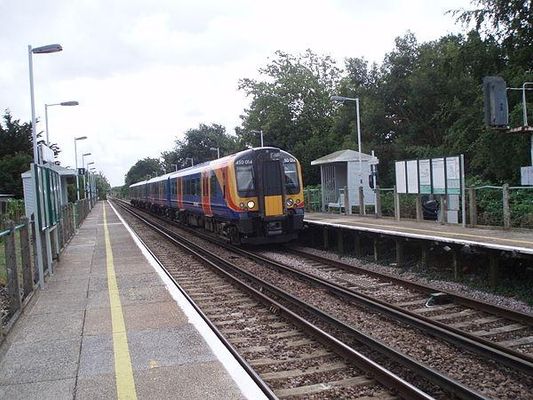 The railway line between Brighton and Portsmouth was built in stages, and the section between Chichester and Havant was opened on 15 March 1847, and there were two intermediate stations, at Bosham and Emsworth. Other stations were opened later, several coinciding with the introduction of steam rail-motor services between Portsmouth and Chichester by the London, Brighton and South Coast Railway on 11 June 1906. One such station, named Denville Halt, was opened on 1 November 1907; the following month this was renamed Warblington Halt. On 5 May 1969 it was simplified to Warblington.