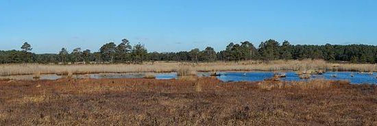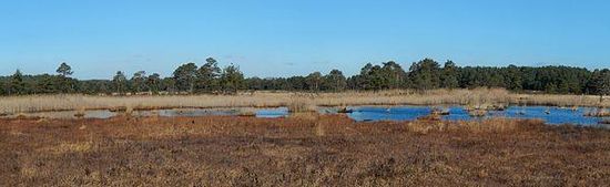 Thursley Common is an area of some 350 hectares of heathland in the southwest of Surrey, England. It is protected as a Site of Special Scientific Interest and as a National nature reserve. Lying between the villages of Thursley and Elstead, the common is generally 2–300 feet above sea-level. The site consists of extensive areas of open dry heathland, with peat bogs, ponds, boggy pools and ditches, and both pine and deciduous woodland. There are sandy tracks and paths, and a "Heath trail" leads from the carpark around a circuit, with boardwalks in boggy areas and with a number of information boards.