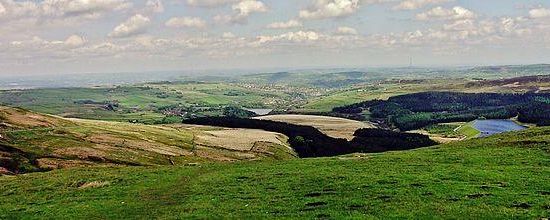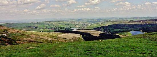 Holme Moss is high moorland on the border between the Holme Valley district of Kirklees in West Yorkshire and the High Peak district of Derbyshire in England. Historically on the boundary between the West Riding of Yorkshire and Cheshire, it is just inside the boundary of the Peak District National Park. The A6024 road between Holmfirth and Longdendale crosses the moor near its highest point close to Holme Moss transmitting station's prominent mast.