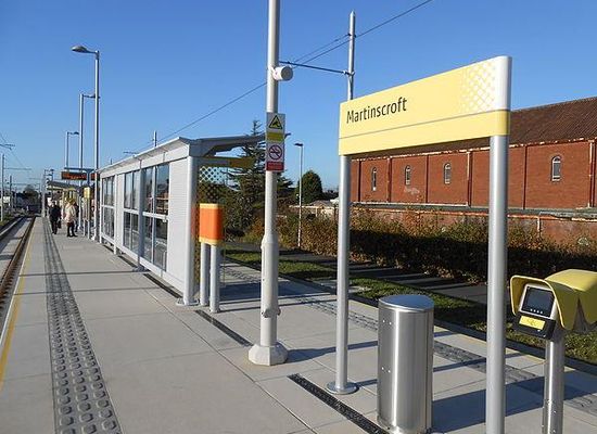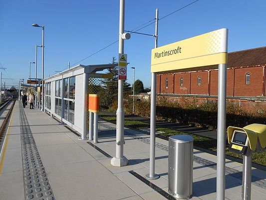Martinscroft is a tram stop for Phase 3b of the Manchester Metrolink. It opened on 3 November 2014 and is on the Airport Line on Hollyhedge Road next to St Martin's Church in Baguley, Wythenshawe.