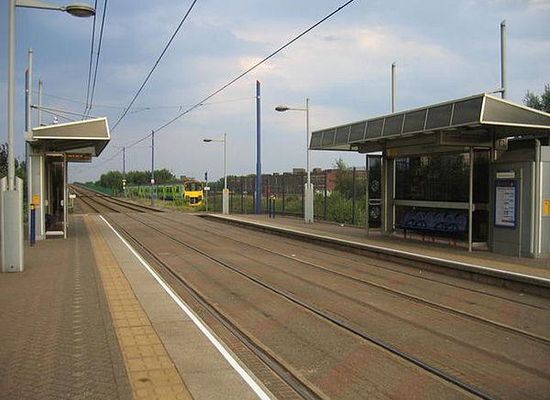 The Birmingham to Worcester railway line runs alongside, but the stop is served only by trams, as there are no railway platforms.