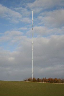 It has a guyed tubular steel mast, with a lattice upper section. The mast was shortened in April 2010 and is now 1,154 feet in height. Before this it was 1,272 feet high and was considered to be the tallest structure of its kind in the world , the tallest structure of any type in the United Kingdom. After the top section was removed, the mast's reduced height relegated it to the second-highest in the UK after Skelton.