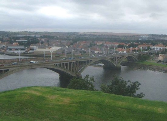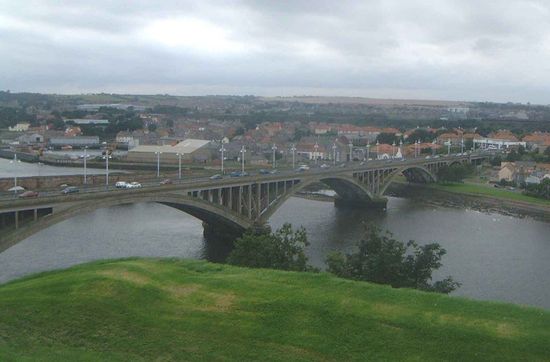 The Royal Tweed Bridge is a 1920s road bridge in Berwick-upon-Tweed, Northumberland, England crossing the River Tweed. It was intended to divert traffic from the 17th century Old Bridge, and until the 1980s it formed part of the A1 road, the main route from London to Edinburgh. However, the construction of a new bridge to the west of Berwick as part of bypass has since reduced the Royal Tweed Bridge's importance.