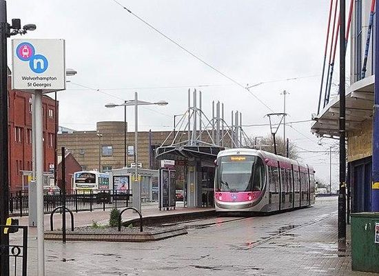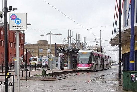 Wolverhampton St George's tram stop is a tram stop in Wolverhampton, England. It was opened on 31 May 1999 and is the current terminus of the West Midlands Metro Line 1. The stop is located on Bilston Street. It is one of two stops on the Wolverhampton end of the Metro that are not on the former railway track bed.