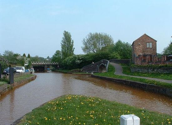 The Trent and Mersey Canal was authorised by an Act of Parliament in 1766, and construction began at once. After rising through 40 locks from Shardlow on the River Trent, the 93-mile canal had a short summit section, most of which was through the 2,897-yard Harecastle Tunnel, before it began its descent through another 36 locks to reach Preston Brook and the Bridgewater Canal. It was completed in 1777.