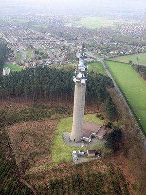Pye Green BT Tower is a 96.9 metres tall telecommunication tower built of reinforced concrete at Pye Green, Staffordshire, England . Standing in Cannock Chase, it is one of fourteen telecommunication towers in the United Kingdom built of reinforced concrete. Pye Green was constructed as part of the British Cold War "Backbone" radio communications network.