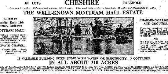 Mottram Hall is a former country house to the northeast of the village of Mottram St. Andrew, Cheshire, England. It is recorded in the National Heritage List for England as a designated Grade II* listed building. It is not to be confused with Mottram Old Hall .