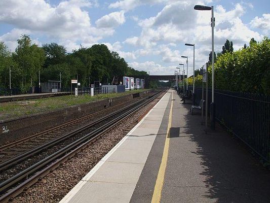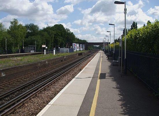 Esher railway station is a mid-priority station on the South Western Main Line operated by South Western Railway in England. The station adjoins the north of Esher with two footpaths skirting Sandown Park Racecourse, the town's commercial area being 300 metres beyond the racecourse entrance. The station is situated between Surbiton and Hersham and is 14 miles 31 chains from London Waterloo.