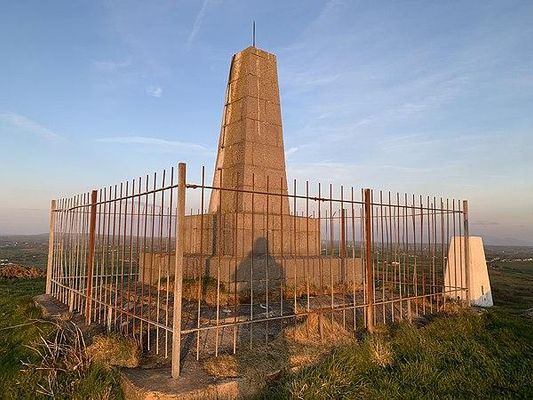 Mynydd y Garn is a hill in the northwest of the Isle of Anglesey in north Wales. Its 170 m high summit is crowned by a trig point and a stone obelisk. Erected in 1897 it commemorates Sir William Thomas, ship-owner and one time High Sheriff of Anglesey.