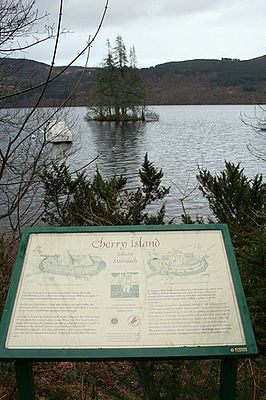 Cherry Island is the only island in Loch Ness, Highland, Scotland, and is an example of a crannog. The island is about 150 yards from the shore near the southern end of the loch. The island was originally 160 feet by 168 feet across, but is now smaller as the level of the loch was raised when it became part of the Caledonian Canal. The increase in the level of the loch caused a smaller natural island nearby Eilean Nan Con , to be totally submerged.