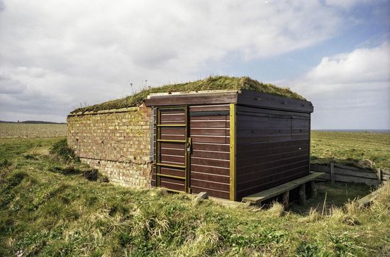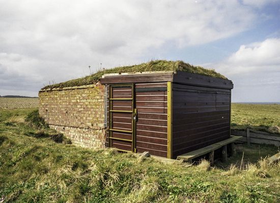 Pair of pillboxes defending gap in cliffs at Sparrow Gap and associated with anti-tank ditch.