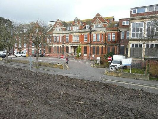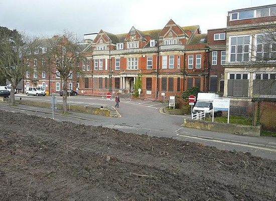 The hospital opened on Rendezvous Street in Folkestone as the Folkestone Dispensary in 1846. The name was expanded to Folkestone Dispensary and Infirmary and it relocated to a site on Dover Road in Folkestone in 1863. The current general hospital buildings were constructed on Radnor Park Avenue, and opened in 1890, when the name was again changed, this time to the Victoria Hospital. The prefix Royal was added in 1910.