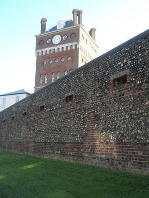 Eastney Barracks, designed by William Scamp , was built as headquarters for the Royal Marine Artillery, who moved in from Fort Cumberland in 1867. After the amalgamation of the Royal Marine Light Infantry and Royal Marine Artillery in 1923, Forton Barracks was closed and Eastney Barracks served as headquarters for the Portsmouth Division of the Corps. The series of seven linked blocks facing the sea forms the second longest barracks frontage in the country . The ensemble has been called "the best and most complete barracks of the post-Crimean War period". Eastney Barracks remained the Corps Headquarters until 1995, when it was sold and converted to private housing. The Royal Marines Museum, established there in 1958, was accommodated in the former officers' mess at Eastney Barracks from 1972 to 2017.