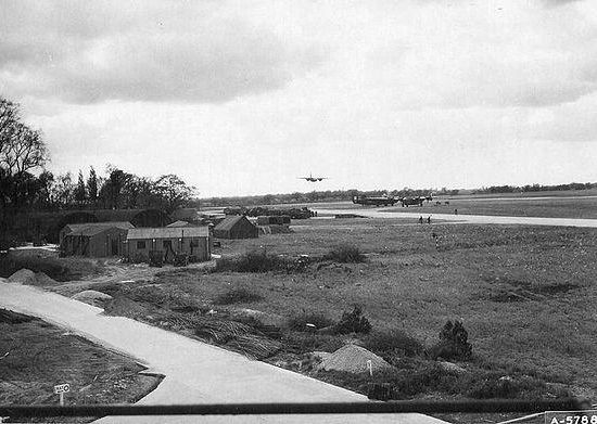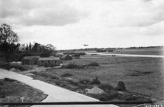 Lavenham airfield was built during 1943. The technical site and administrative buildings were on the southern side of the airfield as were most of the dispersed temporary buildings which gave accommodation for 2,900 personnel. Concrete for the runways and 3.5 miles of perimeter track totalled 190,000 cubic yards and that for roads and buildings 52,000 cubic yards . Bricks used in buildings ran to 4,500,000 and excavations for all sites amounted to 679,000 cubic yards .