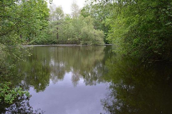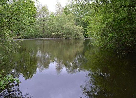 The site is an area of former sandpits which has around a mile of footpaths, woodland, an open glade and many ponds. There is a wide variety of trees, and flowers include wood anemones and bluebells. It is described by Natural England as an area of outstanding natural beauty.