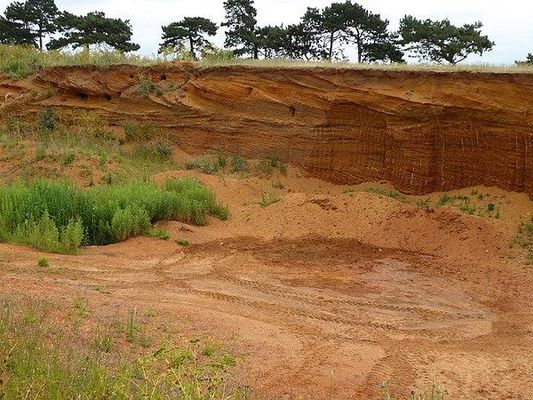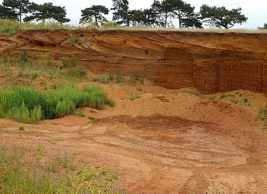 This fossiliferous site exposes rocks of the marine Red Crag Formation, with a megaripple sequence showing the gradual reduction in depth of the sea. The Red Crag spans the end of the Pliocene around 2.6 million years ago and the start of the succeeding Pleistocene.