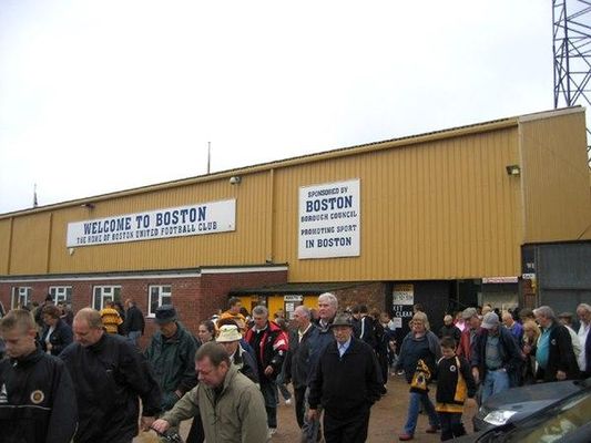 Boston United Football Club is an association football club based in Boston, Lincolnshire, England. The club participates in the National League North, the sixth tier of the English football league system. The club is known as 'the Pilgrims' in reference to the Pilgrim Fathers, who left England and sailed to North America and founded Boston, Massachusetts. The club's crest features the pilgrim fathers' ship, the Mayflower. The club's traditional colours are amber and black. They compete in Lincolnshire derby matches with Lincoln City, Scunthorpe United, Gainsborough Trinity and Grimsby Town. They have played home games at York Street since the club's inception.