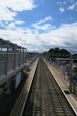 Northumberland Park railway station is on the Lea Valley line that forms part of the West Anglia Main Line, serving the ward of Northumberland Park in Tottenham, north London. It is 6 miles 73 chains down the line from London Liverpool Street and is situated between Tottenham Hale and Meridian Water. Its three-letter station code is NUM and it is in Travelcard zone 3. It is one of the stations that can be used to access Tottenham Hotspur Stadium.