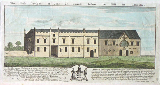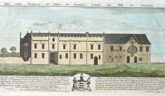 John of Gaunt's Palace was a late 14th-century merchant's house which stood in the lower part of Lincoln High Street, opposite the St Mary Guildhall. It was progressively demolished from the late 18th century until the 1960s. The very fine oriel window from the building has been preserved in the gatehouse of Lincoln Castle.