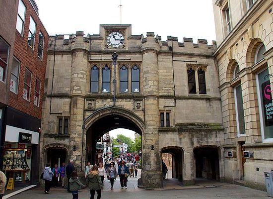 The first gateway on the site, which formed the southern gateway to the City on Lincoln on Ermine Street, the main road from London to York, was completed in the early 211 AD. The gateway would have become known as the Stonebow, which is derived from the Danish word stennibogi, some time after the Viking invasion of England in the late 8th century. The Guildhall, which had been located in the south east corner of the city, was moved to a new location over the Stonebow in 1237. In 1386 King Richard II presented a sword to city officials who ensured that it was displayed in the building. The Guildhall and Stonebow were demolished in the late 14th century but, due to a shortage of funds, the present building was only completed around 1520.