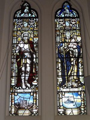Busbridge Church was founded by John and Emma Ramsden of Busbridge Hall. Building work took place between 1865 and 1867 and finished with the building's dedication in 1867. The church was designed by George Gilbert Scott and has a wrought-iron chancel screen by Edwin Lutyens, who also designed the First World War memorial. There are stained glass windows by Morris & Co., including Edward Burne-Jones, and later ones by Archibald Keightley Nicholson. The church is designated as a Grade II* listed building.