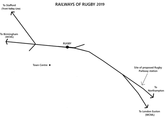 It was the subject of a high level feasibility study which recommended the station to be located on the Northampton Loop Line, near the Hillmorton area of Rugby, and close to new housing in Houlton and DIRFT.