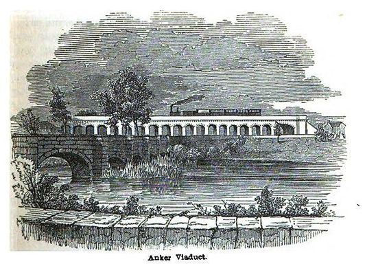It was designed by Robert Stephenson and G. Bidder. The Birmingham and Derby Junction Railway issued tenders for the contract in May 1837 and the contracts were let in August 1837. It was built in rusticated ashlar stone with 19 arches to bridge the River Anker and was originally known as the Anker Viaduct. By February 1839 the construction was completed and the ballasting was being prepared for the permanent way. The first engine traversed the viaduct on 1 July 1839 and the first train on 6 July. Passenger services began on 12 August 1839.