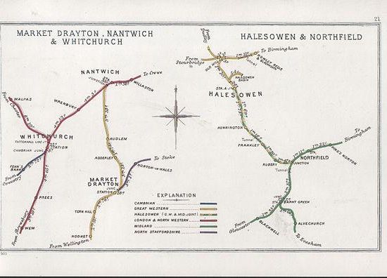Market Drayton railway station served the town of Market Drayton in Shropshire, England, between 1863 and 1963. It was at the junction where three railway lines met: two of them, forming the Great Western Railway route between Wellington and Crewe, were met by a line from Stoke-on-Trent on the North Staffordshire Railway.