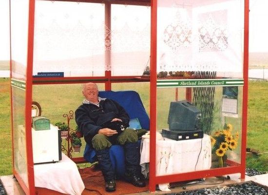 The Unst Bus Shelter, also known as Bobby's Bus Shelter, is a bus shelter and bus stop near the village of Baltasound, on the isle of Unst, Shetland, Scotland. It is maintained by the Shetland Islands Council. It is located on the main road across Unst - the A968 - which runs between Belmont and Haroldswick.