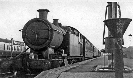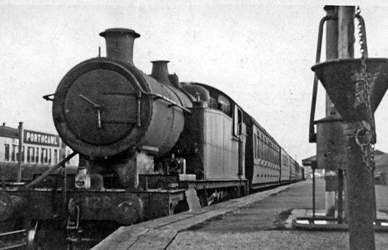 Rail activity began in Porthcawl in 1825, when the Duffryn Llynfi & Porthcawl Railway began construction, opening in 1828. Built to a gauge of four feet and seven inches and using rails based on stone sleepers, it was intended for it to serve a projected new port for the transfer of minerals from South Wales. It ran from Duffryn Llynfi near Maesteg via Tondu and Pyle. It was extended to Bridgend in 1834. The South Wales Railway, which passed through both Bridgend and Pyle, opened in 1850. The Llynfi Valley Railway took over the original company in 1847, and upgraded both the former tramway branches, reopening them as broad gauge railways on 10 August 1861. Porthcawl station opened 1 August 1865. The Llynfi Valley Railway merged with the Ogmore Valley Railway in 1866, creating the Llynfi & Ogmore Railway. Despite the conversion to a railway, trains on the Porthcawl branch continued to be drawn by horses until 1868, when the system was altered again, this time to standard gauge. The new Llynfi & Ogmore Railway was taken over by the Great Western Railway in 1873.