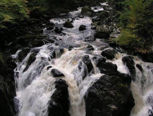 Black Linn Falls is a waterfall on the River Braan in The Hermitage, Dunkeld, Scotland. After the falls, the river passes beneath the Hermitage Bridge into a plunge pool.