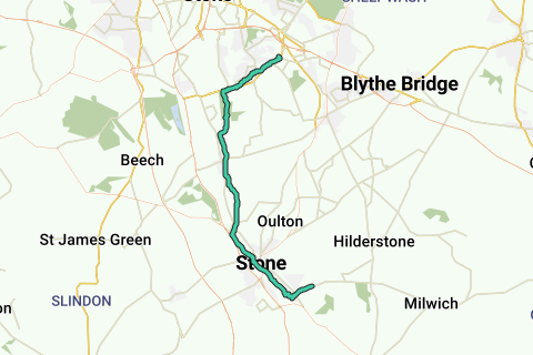 From Uttoxeter Road, ST15 8RA Stone, England, United Kingdom