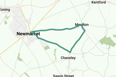 road route starrting on Warren Hill gallops in Newmarket, travalling in a loop via Moulton