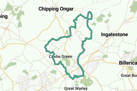 From Warley, through Brentwood, Wyatt's Green, Blackmore, Kelvedon Hatch and around Weald Park