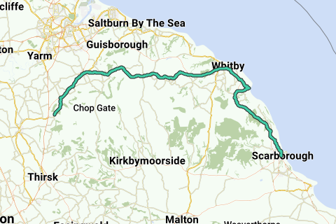 Tough route through North York Moors, via Kildale and Danby, before cycling through Whitby and onto Robin Hood's Bay and Scarborough.