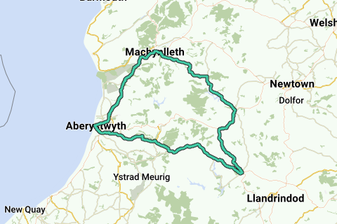 Machynlleth-Aberystwyth-Capelsion-Cwmystwyth-Rhayader-Llani