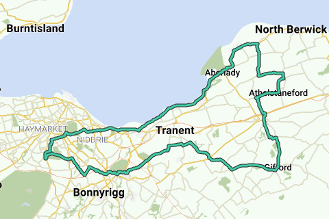Edin - Dalkeith - Pencaitland - Gifford - Haddington - Dirleton - Gullane - Port Seton - Prestonpans - Musselburgh - Edin -