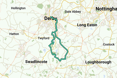 NCN 6 from Derby to Worthington and mainly quiet roads back to rejoin NCN 6 in Chellaston