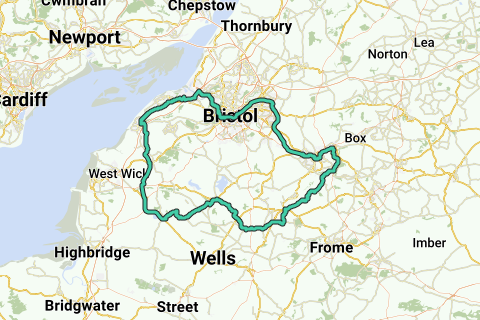 Bath, Bristol, Clevedon, Yatton, Cheddar, Radstock, Dundas, Bath - 133km
