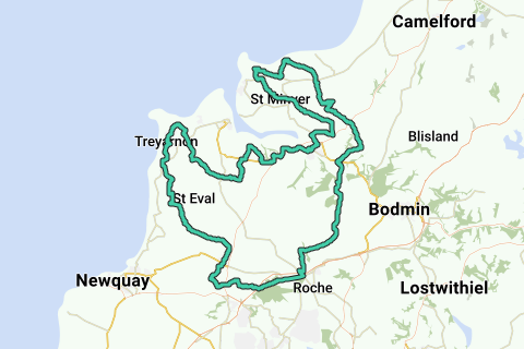 This routes incorporates the nicest roads to reach Goss Moor. You won't die of boredom along this route. You can expect everything along this route: climbing, descending and beautiful spots to take a break! There is little (no) chance you will be seeing cars along this route. You can start this route at a train station (Wadebridge railway station). You won't die of boredom along this route.