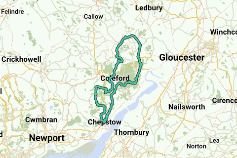 An amble around the Wye Valley and Forest of Dean on a mix of minor and major roads.