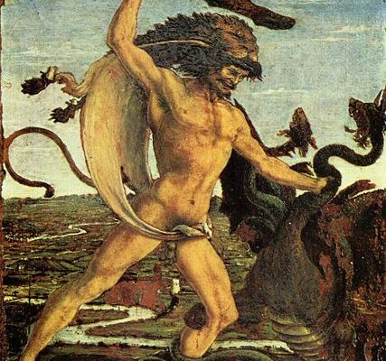 Near the town of Lerna is the famous mythological Lake of Lerna, currently more a swamp than a lake. In this lake lived the Lernaean Hydra, a serpent-like water beast with many heads. It was one of the Twelve Labours of Heracles to. Beneath the waters of the lake, there was an entrance to the Underworld.