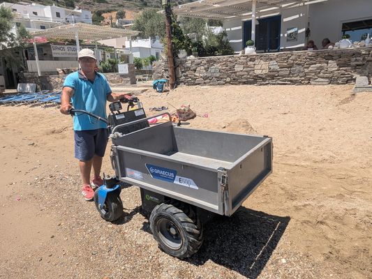 Most of the houses near the beach of Vathi can only be reached via the beach because the main paved road stops at the border of the village. If you rent a room in Vathi, there is a big chance you will carry your luggage with a wheelbarrow (or they will do that for you). Because there are no roads and as such cars in the village, it makes it a great place for children.