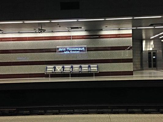 Agia Paraskevi metro station is on Athens Metro Line 3. It opened on 30 December 2010, although its construction necessitated disruption of metro services east of Ethniki Amyna.