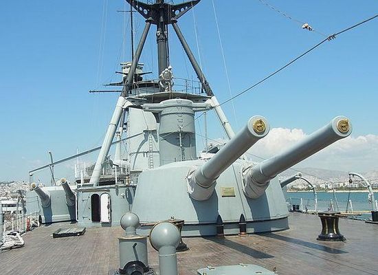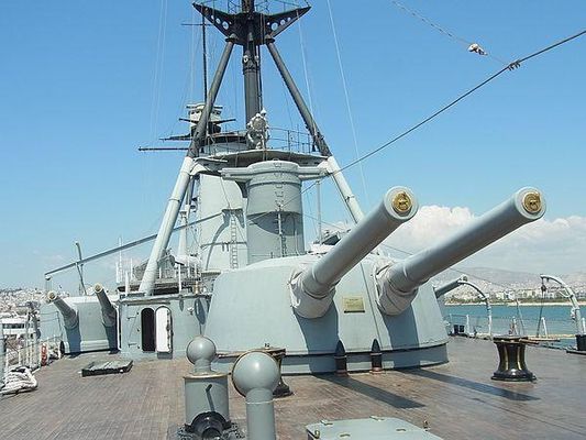 Georgios Averof is a modified Pisa-class armored cruiser built in Italy for the Royal Hellenic Navy in the first decade of the 20th century. The ship served as the Greek flagship during most of the first half of the century. Although popularly known as a battleship in Greek, she is in fact an armored cruiser , the only ship of this type still in existence.
