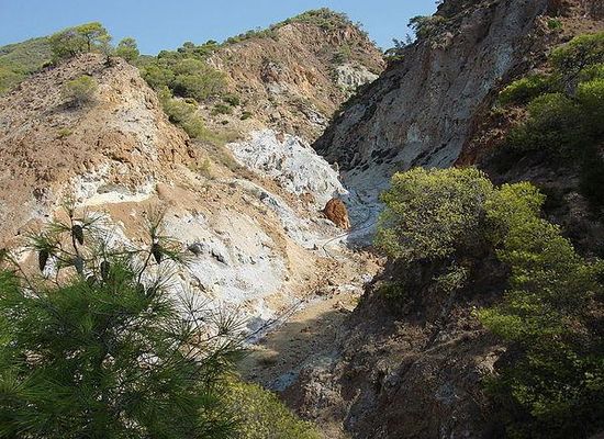Sousaki is a dormant volcano and modern solfatara field in northeastern Corinthia, Greece, at the northwest end of the South Aegean Volcanic Arc.
