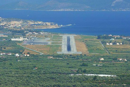 The airport is named after Aristarchos of Samos, an ancient astronomer and mathematician, and lies within 5 km from the nearby town of Pythagorio. The airport features a single short runway serving both arrivals and departures. The airports surroundings leave little room for error or mistake on the behalf of the pilots – with nearby mountains and sea at the end of the short runway. There are often strong Meltemi winds blowing from the north during the summer months which further contribute to the difficulty of the landing.